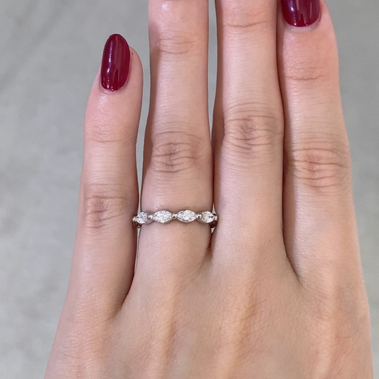 0.75ct Round And Maquise Shared Prong Diamond Platinum Eternity Band