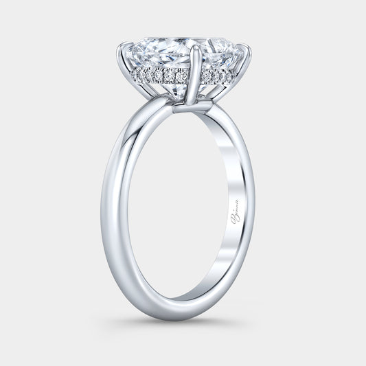Cushion Diamond Extra Low Profile Hidden Halo Solitaire White Gold Engagement Ring
