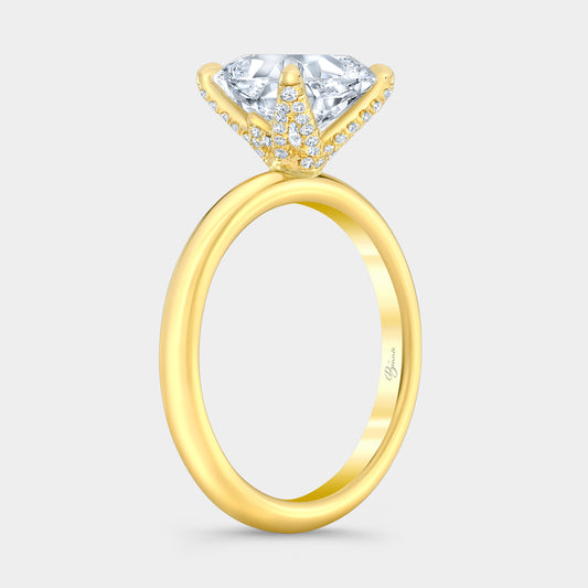 Cushion Diamond Tulip Solitaire Yellow Gold Engagement Ring
