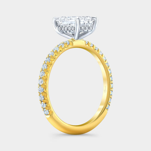 Emerald Diamond Hidden Halo French Pave Yellow Gold And Platinum Engagement Ring