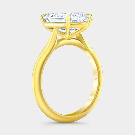 Emerald Diamond Tapered Cathedral Solitaire Yellow Gold Engagement Ring