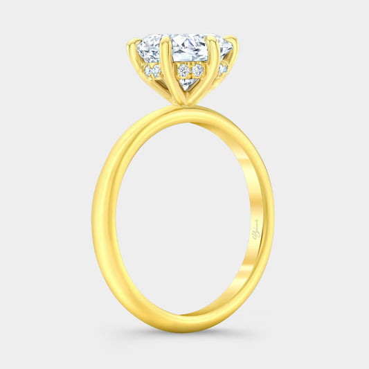 Cushion Diamond 6 Prong Hidden Halo Solitaire Yellow Gold Engagement Ring