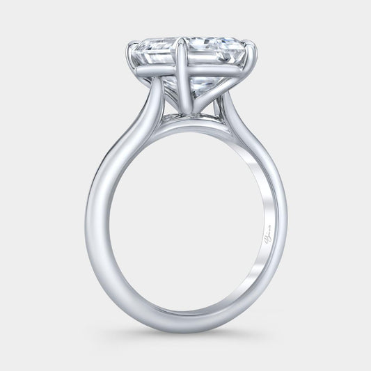 Emerald Diamond Thin Bezel Solitaire Platinum Engagement Ring