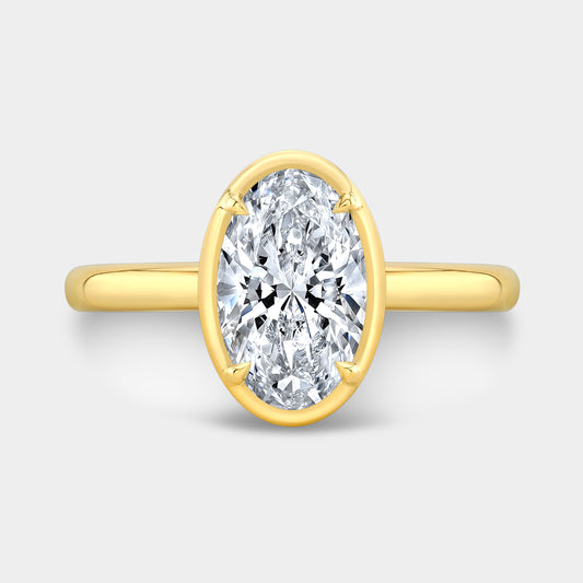 Oval Diamond Mira Bezel Hidden Halo Solitaire Yellow Gold Engagement Ring