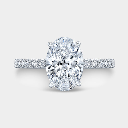 Oval Diamond Hidden Halo with French Pave Platinum Engagement Ring