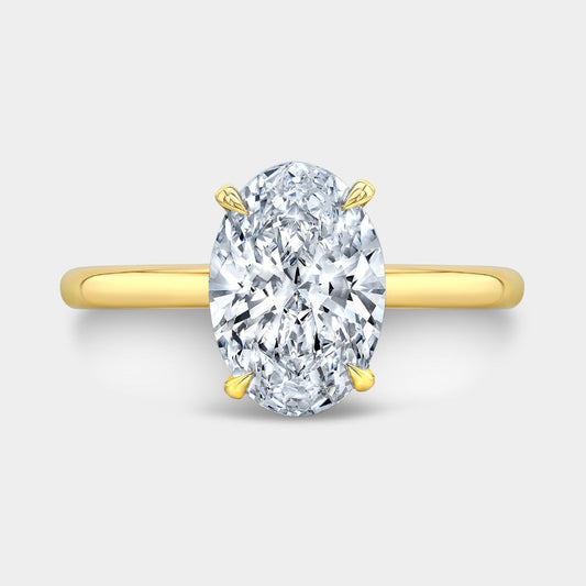 Oval Diamond Hidden Halo Solitaire Yellow Gold Engagement Ring