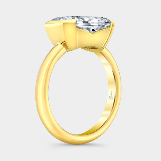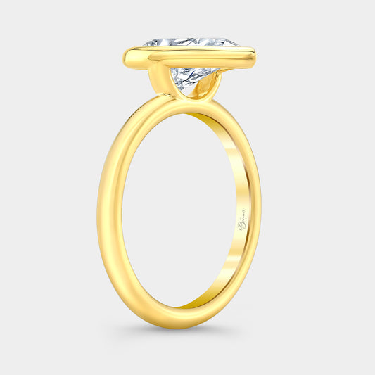 Radiant Diamond East West Half Bezel Set Solitaire Yellow Gold Engagement Ring