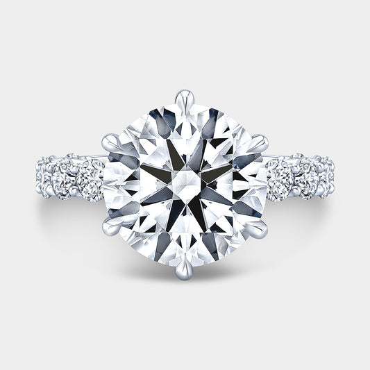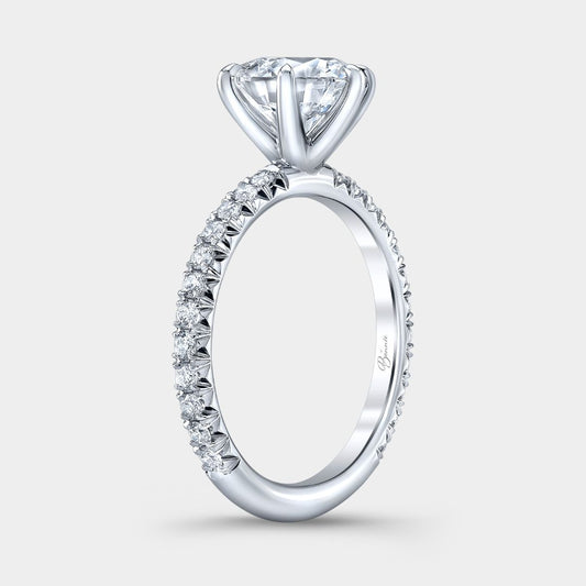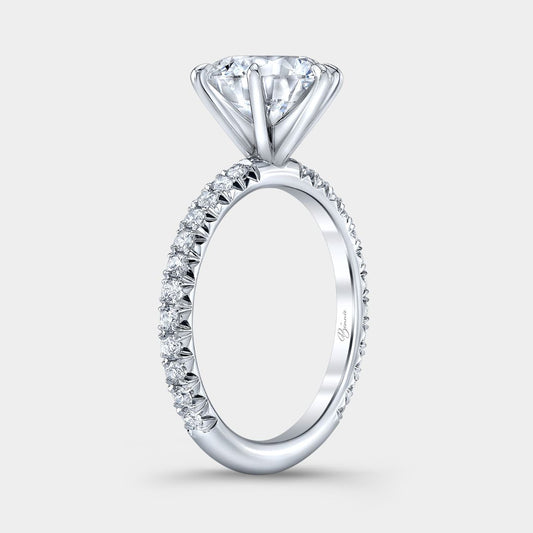 Round Diamond Hidden Halo French Pave 6 Prong White Gold Engagement Ring