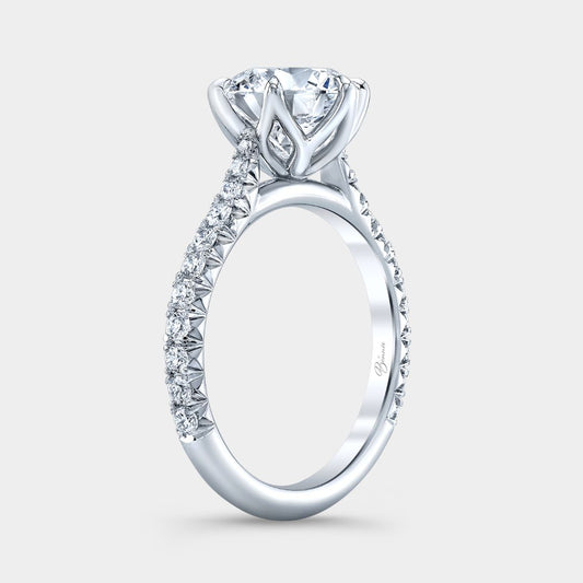 Round Diamond 6 Prong Tulip Tapered Cathedral with French Pave Platinum Engagement Ring