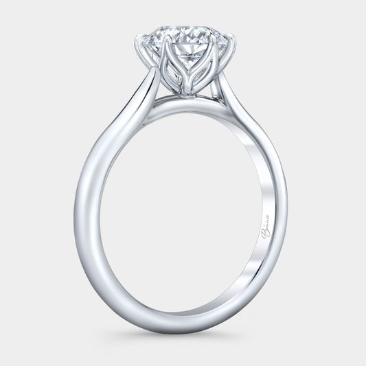 Round Diamond Knife Edge Tulip Cathedral Solitaire White Gold Engagement Ring