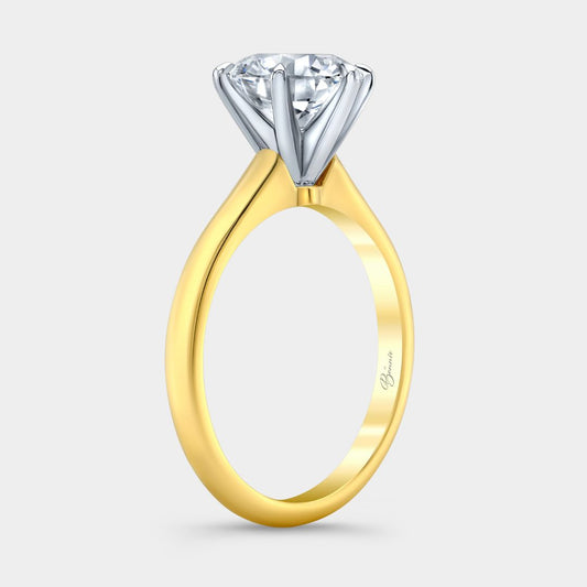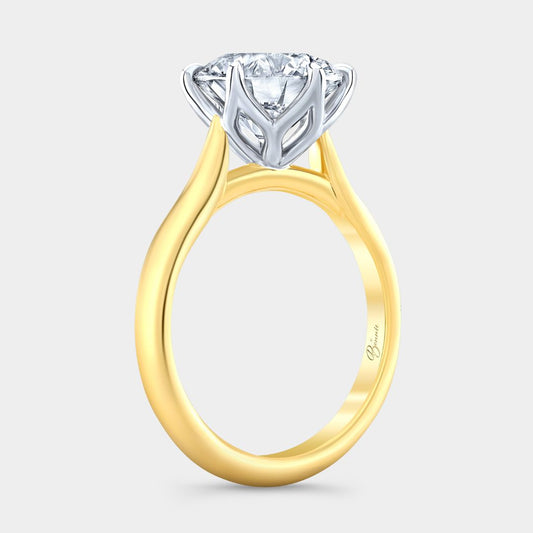 Round Diamond 6 Prong Tulip Knife Edge Tapered Cathedral Yellow Gold And Platinum Engagement Ring