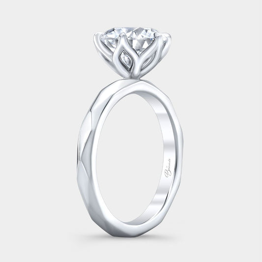 Round Diamond Geometric Faceted Solitaire Platinum Engagement Ring