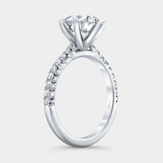 Round Diamond 6 Prong Low Cathedral French Pave Platinum Engagement Ring