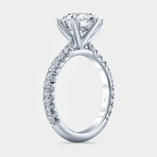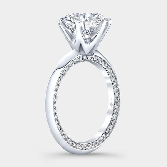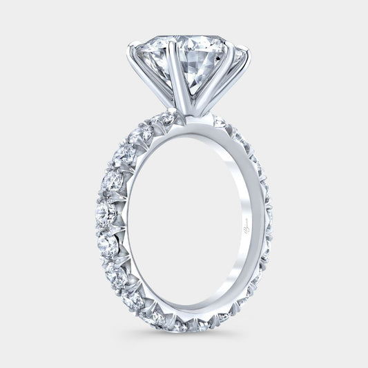 Round Diamond 6 Prong French Pave Eternity Platinum Engagement Ring