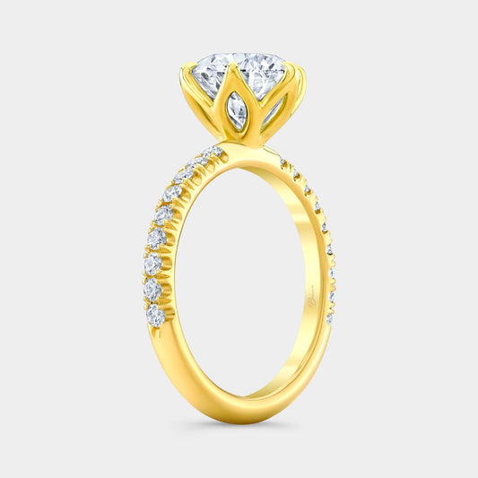Round Diamond 6 Prong Tulip U Pave Yellow Gold Engagement Ring