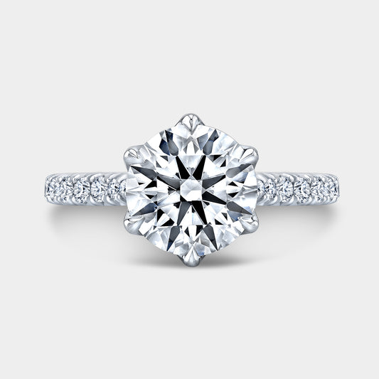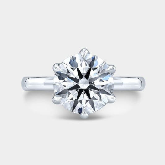 Round Diamond Tulip Crown Cut Single Shared Prong Platinum Engagement Ring