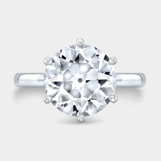 Round Old European Diamond Solitaire with Hidden Halo Platinum Engagement Ring