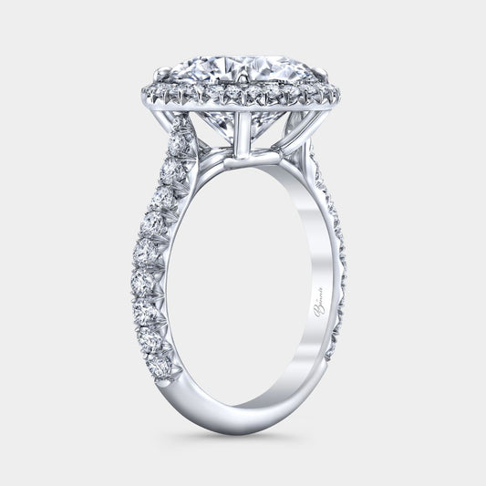 Round Diamond Seamless Halo Cathedral French Pave Platinum Engagement Ring