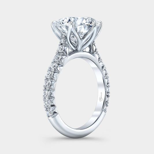 Round Diamond Tulip Bridge French Pave White Gold Engagement Ring