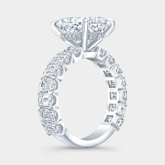 Cushion Diamond Chloe with Emerald Cut Side Diamonds Platinum Engagement Ring