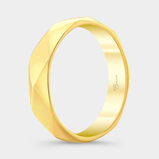 5.0mm Faceted Geometric Yellow Gold Wedding Band