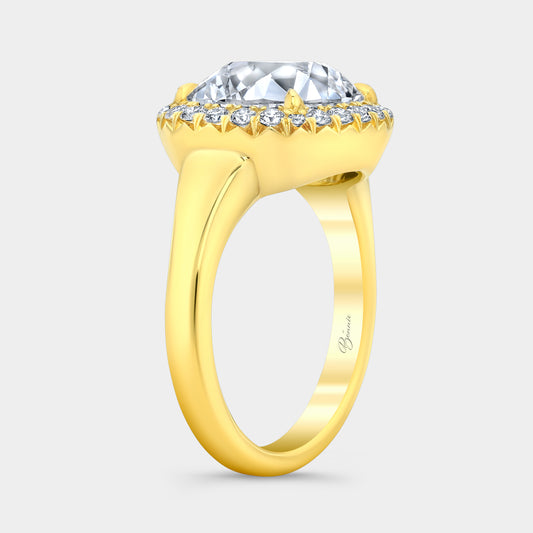 Cushion Diamond Old Mine Yellow Gold Engagement Ring