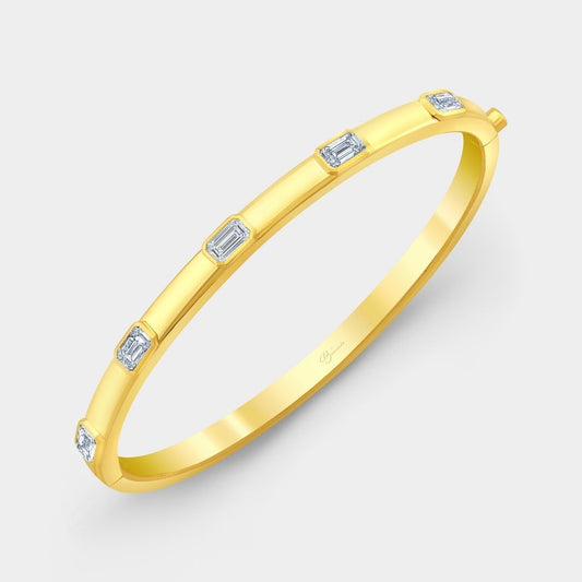 1.70ct Lab Grown East West Emerald Cut Diamond Solid Yellow Gold Bangle