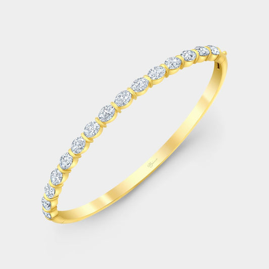 East West 4ct Lab Grown Oval Diamond Bangle Yellow Gold