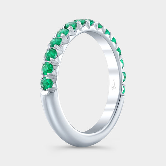 0.50ct Natural Green Emerald French Pave Wedding Band