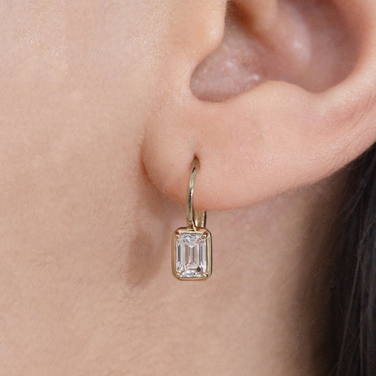1ct Emerald Diamond Drop Yellow Gold Earrings