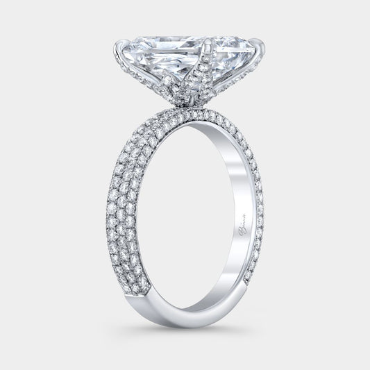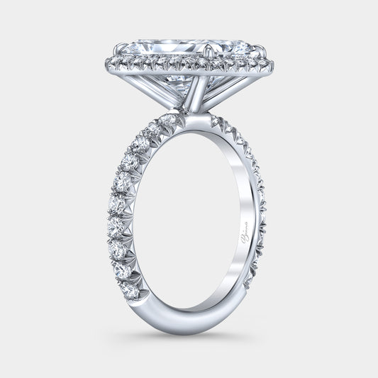 Radiant Diamond Seamless Halo with U Pave Platinum Engagement Ring