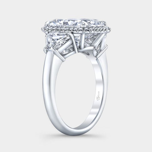 Radiant Halo with Trapezoid Three Stone White Gold Engagement Ring