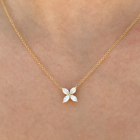 0.50ct Marquise Diamond La Fleur Pendant Yellow Gold Necklace