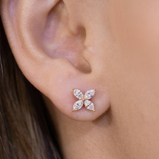 1ct Marquise Diamond La Fleur Stud Rose Gold Earrings