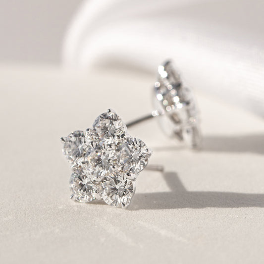 3.25ct Round Diamond La Fleur Stud White Gold Earrings