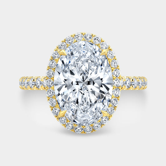 Oval Petite Halo with U Pave Yellow Gold Engagement Ring