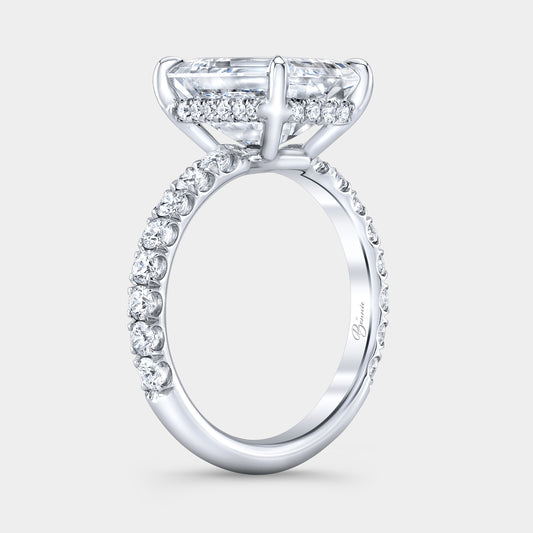 Emerald Diamond Extra Low Profile Hidden Halo U Pave Platinum Engagement Ring