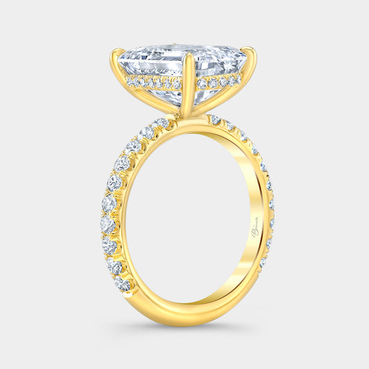 Emerald Diamond Hidden Halo U Pave Yellow Gold Engagement Ring