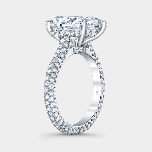Oval Hidden Halo U Pave Platinum Engagement Ring