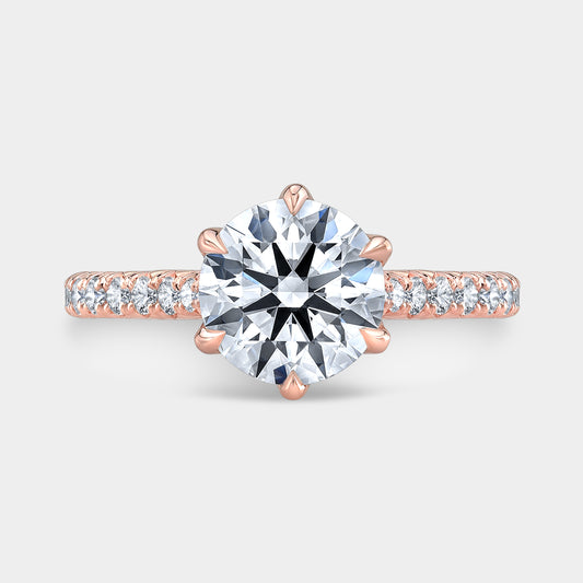 Round Diamond U Pave Rose Gold Engagement Ring