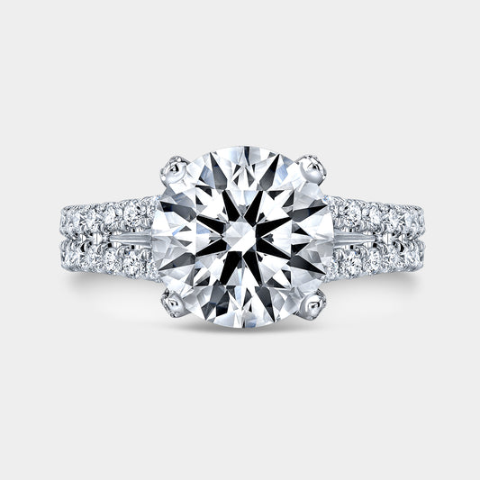 Round Diamond with Double Row U Pave White Gold Engagement Ring