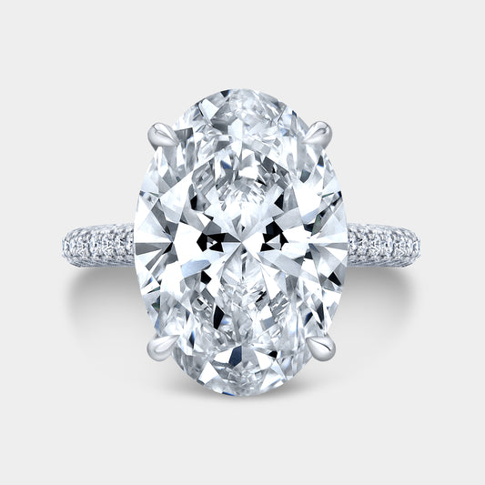 Oval Diamond Hidden Halo 3 Row Pave Platinum Engagement Ring