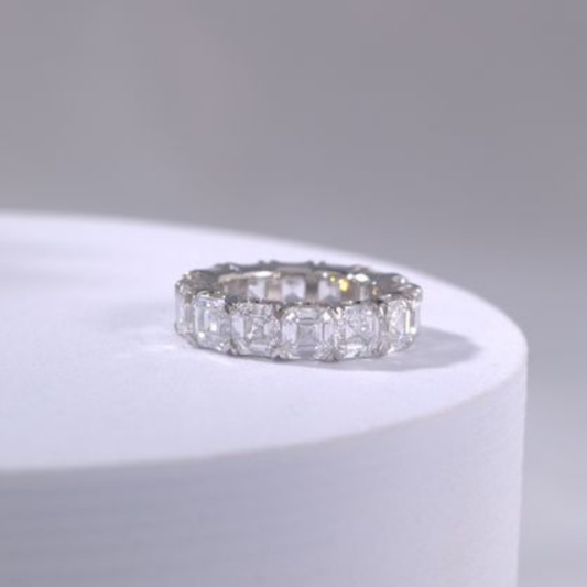 5ct Lab Asscher Cut Diamond Platinum Eternity Pinky Ring
