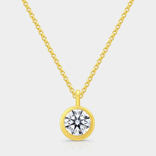 2ct Lab Diamond Bezel Yellow Gold Pendant