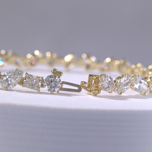 13.5ct Lab Grown Multi Shape Diamond Yellow Gold Tennis Bracelet