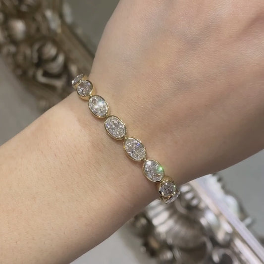 15ct Lab Grown Oval Diamond East West Bezel Yellow Gold Tennis Bracelet