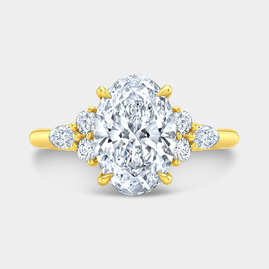 2.09ct Lab Grown Oval Diamond Claudia 7 Stone Yellow Gold Engagement Ring
