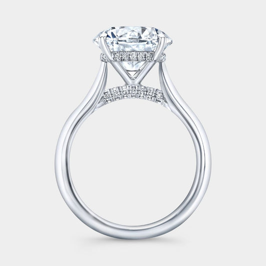 3.77ct Lab Grown Round Diamond Hidden Halo Diamond Bridge Solitaire Platinum Engagement Ring