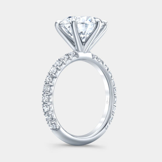 4.01ct Lab Grown Round Diamond 6 Prong French Pave Platinum Engagement Ring