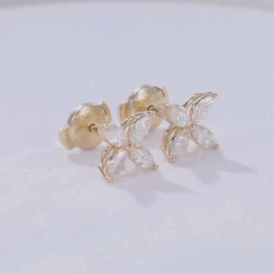 0.68ct Lab Grown Marquise Diamond La Fleur Stud Earrings Yellow Gold